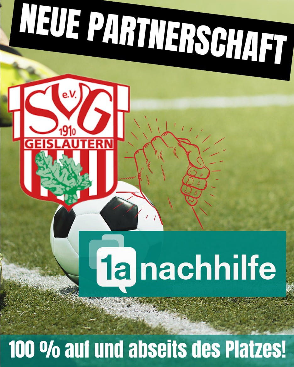 1a-nachhilfe Geislautern kooperiert mit dem SV Geislautern. Gemeinsam verbinden wir Schule und Vereinssport: Zusammen wollen wir unsere jungen Talente nicht nur auf dem Platz, sondern auch auf dem schulischen Bildungsweg stärken – denn Teamwork können wir!